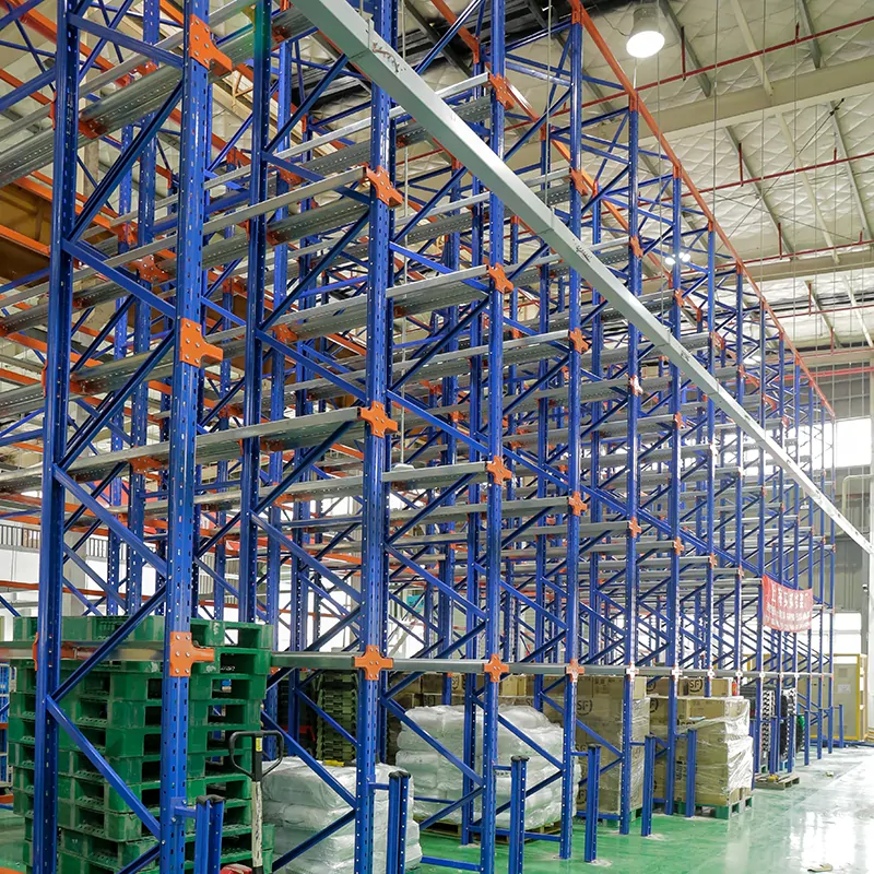 Ideal for industries with large quantities of homogeneous products, this racking solution reduces aisle space by up to 70% compared to standard pallet racks, making it a cost-effective choice for cold storage, manufacturing facilities, and distribution centers. Its robust steel construction supports heavy loads, while customizable dimensions ensure compatibility with various pallet sizes and warehouse layouts.
